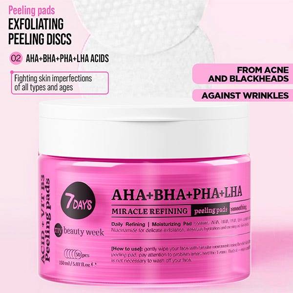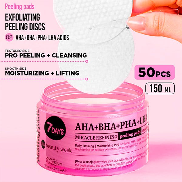 Almohadillas exfoliantes faciales refinadoras con complejo PRO de cuatro ácidos: 4 pasos para lograr una piel suave, hidratada, flexible y luminosa.