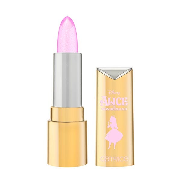 Haz que tu rutina de belleza sea cualquier cosa menos ordinaria con el bálsamo de labios inspirado en Alicia en el País de las Maravillas de Disney. Este bálsamo morado translúcido contiene finas partículas de brillo dorado y reacciona al pH natural de tus labios para crear un acabado único y suave. La fórmula de cuidado crea un efecto nutritivo a la vez que realza el color natural de los labios, todo envuelto en un sutil aroma a vainilla y alojado en un lujoso envase dorado.