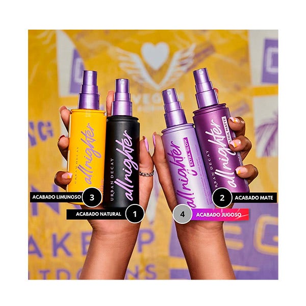 El spray fijador All Nighter Extra Glow no solo fija tu maquillaje por 16h, sino que también te ayuda a retener la hidratacion de la piel gracias al ácido hialurónico.