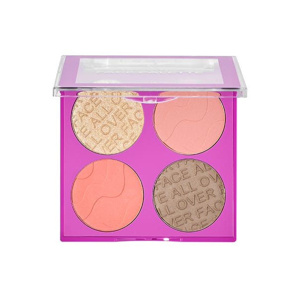 La paleta de rostro All-Over Face incluye un iluminador, un contorno y dos tonos de colorete.