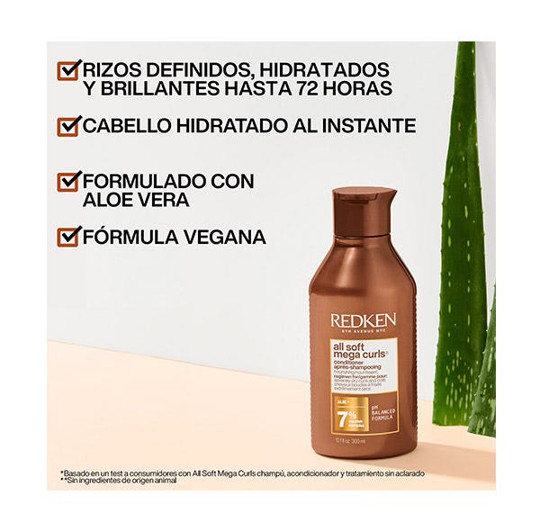 Acondicionador para cabello rizado y seco, con tecnología Nourish Complex y Aloe Vera que penetra en el interior del cabello para limpiar, hidratar y definir los rizos.