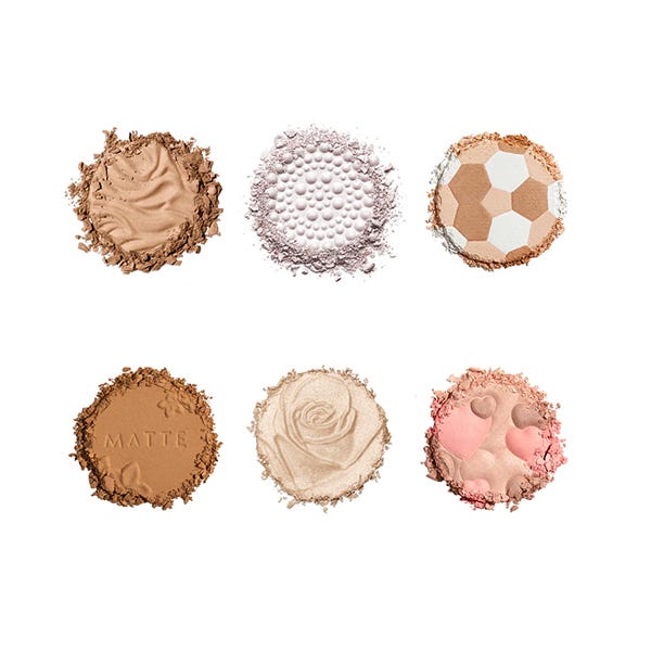 Esta paleta imprescindible contiene nuestra línea de polvos estrella: nuestro bronceador Murumuru Butter Bronzer y Matte Monoi Butter Bronzer, iluminadores Rosé All Day Petal Glow Highlighter, Happy Booster Glow y el colorete Mood Boosting Blush. También incluye polvos Mineral Glow Pearls Highlighter y Face Powder.