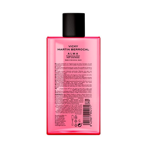Envuelve tu piel en la sofisticación delicada de Alma Body Mist. Esta bruma ligera y fresca combina notas florales y dulces que evocan un jardín en plena floración, mientras su textura suave refresca y perfuma delicadamente. El aroma envolvente de jazmín, rosa y toques dulces crea una sensación de elegancia y feminidad que permanece a lo largo del día. Perfecto para un toque rápido de frescura y sofisticación en cualquier momento.
