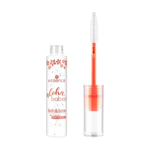 Crea unas cejas perfectamente perfiladas y unas pestañas nutridas para tus escapadas tropicales con la máscara en gel para pestañas y cejas aloha, babes! 01 Ready, Sun-set, Go! de essence.
