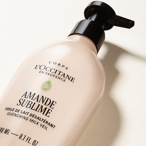 Su textura ligera se absorbe rápidamente y deja un delicado perfume de almendra fresca.