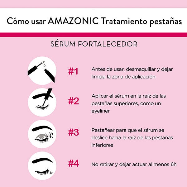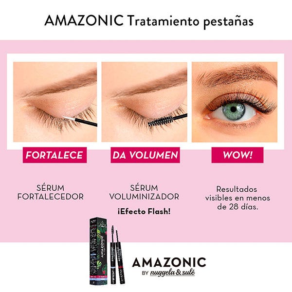 Sérum Amazonic Pestañas de DOBLE ACCIÓN tiene ingredientes naturales que han demostrado clínicamente, potenciar el crecimiento de las pestañas, su densidad y pigmentación.