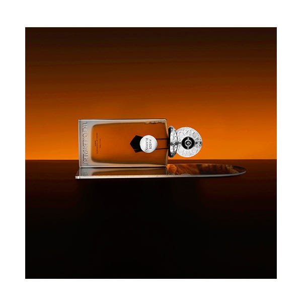 Inspirado en el ámbar y las brasas de tabaco que perfuman los viajes y caravanas del desierto. El humo ritual se insinúa en un acorde de tabaco. Las especias, el cashmere y el ron conducen a un ámbar profundo con miel y almizcle. Envolvente y ceremonial, como un baño de humo ancestral.