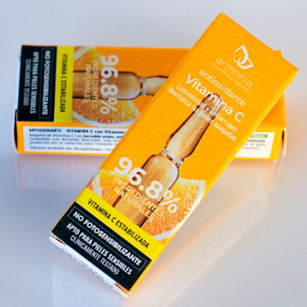 Tratamiento antioxidante de vitamina C con un 96.8 % de ingredientes naturales. Formulado a partir de Ascorbyl glucoside una forma de Vitamina C más estable, más compatible con la epidermis y que se libera directamente en el interior de la célula mejorando los resultados del tratamiento e inhibe de forma más eficaz la síntesis de melanina, responsable de las manchas.