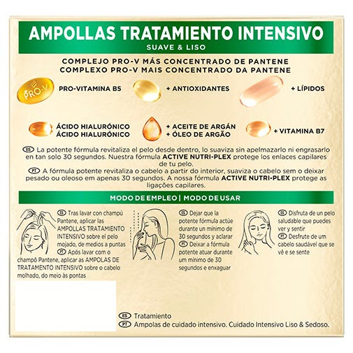 Los lípidos de las ampollas de rescate Pantene Pro-V ayudan a mantener la integridad estructural del pelo, para un aspecto más suave y liso en tan solo 1 minuto. ¡Es fácil!