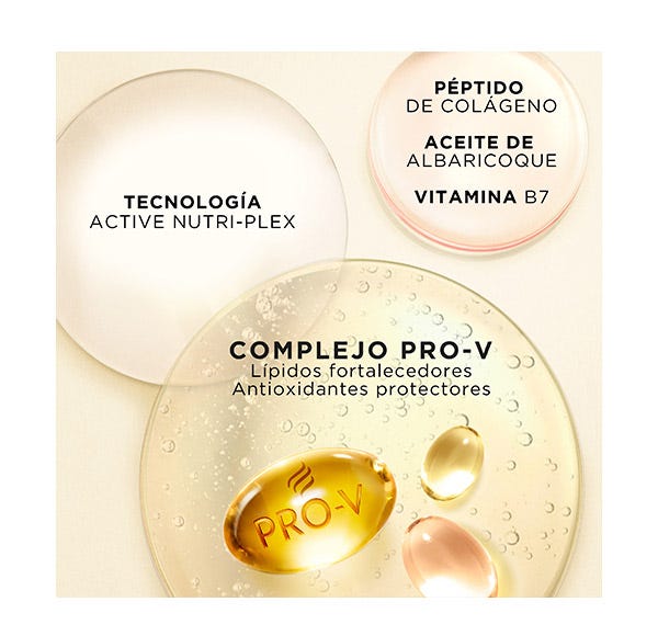 Elaborada con fórmula Pro-V, antioxidantes y lípidos para conseguir un pelo fuerte sin rastro de daños (resistencia contra los daños causados por el peinado).