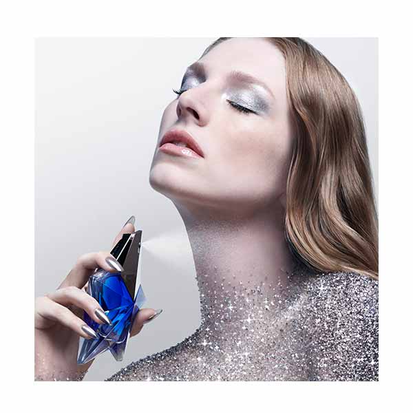 Las fragancias Mugler no se aplican de la misma manera que las demás. Debido a su estructura única y a sus ingredientes sobrealimentados, dejan una estela poderosa. Por ello, Mugler ha diseñado un ritual único y específico para disfrutar al máximo de la quintaesencia y la voluptuosidad de la fragancia: la "Nube Mugler". En primer lugar, pulverice una generosa cantidad de Angel Stellar para crear una nube de aroma. Entre en el polvo de estrellas. Potencie el glamour que lleva dentro.