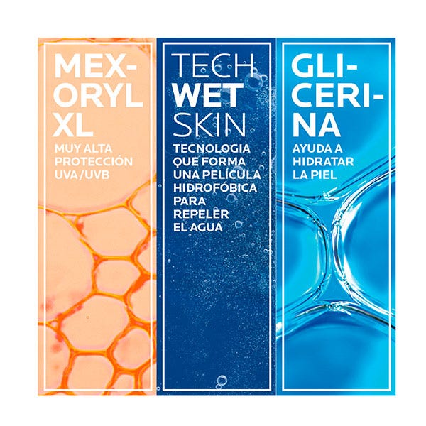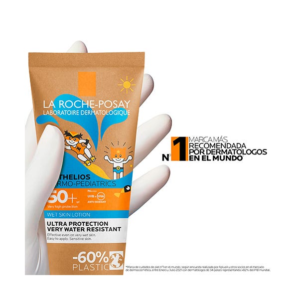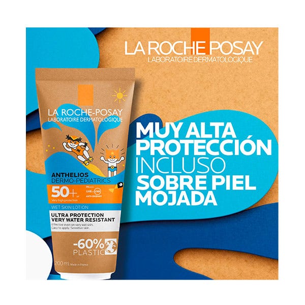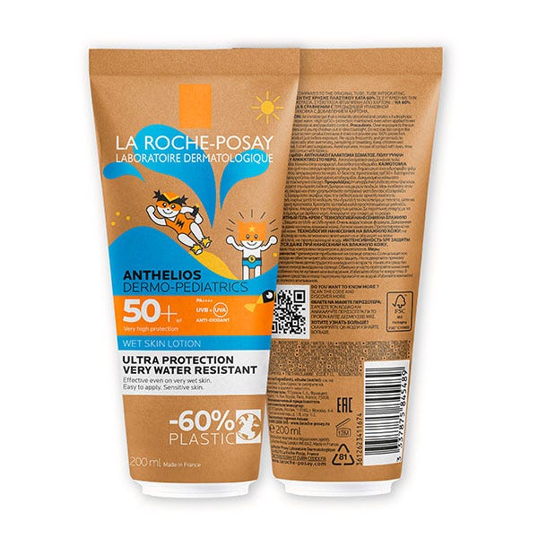 Protector solar corporal apto para piel mojada con muy alta protección UV para la piel sensible de los niños. Proporciona una muy alta protección de amplio espectro, ayudando a prevenir los daños causados por los rayos UVA, UVB Infrarrojos-A y la contaminación.