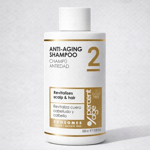 La gama capilar de %percentage by GOLD TREE nace con una filosofía clara: tratar el cabello desde su origen. A diferencia de la peluquería tradicional centrada en efectos inmediatos y sensoriales, nuestras fórmulas actúan sobre el cuero cabelludo y la fibra capilar con un enfoque de tratamiento profundo, equilibrado y duradero. Desarrollada con altas concentraciones de activos biotecnológicos —incluyendo EXOSOMAS en la línea antiedad—, y formulada sin sulfatos, siliconas ni parabenos, prioriza la salud capilar real por encima de artificios cosméticos. Menos espuma no significa menos limpieza, sino mayor eficacia y respeto por el equilibrio natural del cuero cabelludo. El resultado son fórmulas veganas, concentradas y 100 % fabricadas en España, diseñadas para ofrecer resultados visibles, progresivos y sostenibles, basados en ciencia y no en sensaciones.