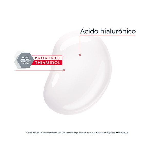 Agua, glicerina, alcohol desnaturalizado, alcohol cetílico, adipato de dibutilo, triglicérido caprílico/cáprico, carbonato de dicaprililo, caprilato de propilheptilo, isobutilamido tiazolil resorcinol, hialuronato sódico, tocoferol, estearoil glutamato sódico, dimeticona, carbómero, fenoxietanol, etilhexilglicerina, EDTA trisódico, hidróxido sódico, cloruro sódico, perfume.