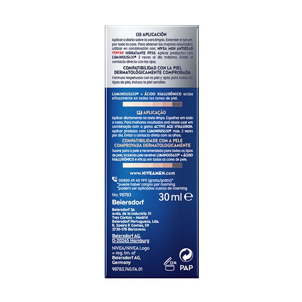 Para obtener mejores resultados utilizar en combinación con: NIVEA MEN ANTIEDAD POWER HIDRATANTE FP30.