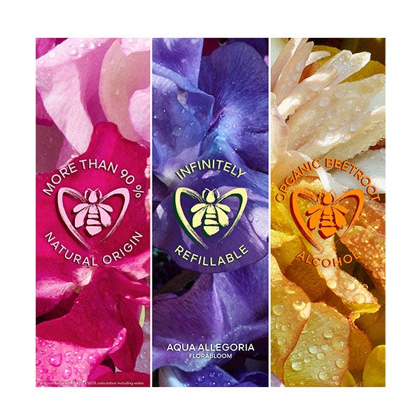 Los perfumes Aqua Allegoria Forte, símbolo innegable del compromiso de Guerlain con el planeta, se componen de más de un 90 % de ingredientes de origen natural*.