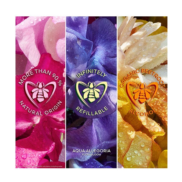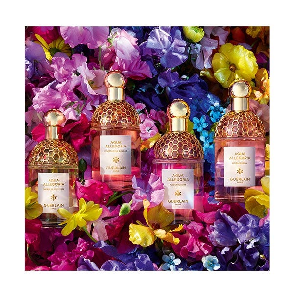 Los perfumes Aqua Allegoria, símbolo innegable del compromiso de Guerlain, se componen de hasta un 95 % de origen natural*.