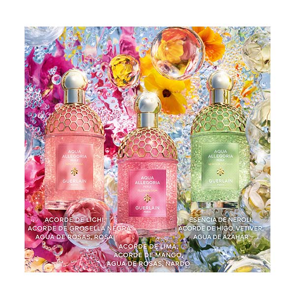 Las fragancias Aqua Allegoria Perle, auténticos perfumes para la piel, combinan la intensidad de un Eau de Parfum con el efecto de un tratamiento hidratante. En esta nueva generación de perfumes de agua*, el perfume se captura en microperlas compuestas de alginato de origen natural que evolucionan en una base acuosa, formulada sin alcohol. Enriquecida con glicerina vegetal, su textura en gel se funde en la piel con un solo gesto. La envuelve en un velo suave y aterciopelado, con efectos sublimadores e hidratantes.