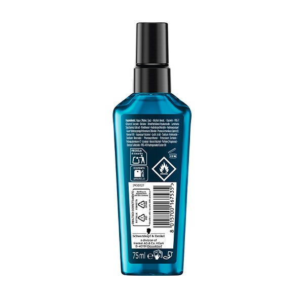 Aqua (Water, Eau), Alcohol denat., Glycerin, PEG-7 Glyceryl Cocoate, Betaine, Dimethylsilanol Hyaluronate, Laminaria Saccharina Extract, Panthenol, Hydrolyzed Keratin, Hydroxypropyl, Guar Hydroxypropyltrimonium Chloride, Prunus Armeniaca (Apricot) Kernel Oil, Isopropyl Alcohol, Lactic Acid, Sodium Hydroxide, Sodium Benzoate, Phenoxyethanol, Potassium Sorbate, Polyquaternium-37, Linalool, Benzyl Alcohol, Parfum (Fragrance), Benzyl Salicylate, PEG-40 Hydrogenated Castor Oil