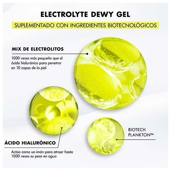 Su textura de gel refrescante proporciona una sensación de frescor instantánea y está potenciada por una combinación avanzada de 7000 mg de Electrolyte Mix y 1000 mg de Hyalu B3 para resultados duraderos. Los electrolitos, 1000 veces más pequeños que el ácido hialurónico, actúan como micropropulsores de agua, llevando la humedad a las capas superficiales de la piel para proporcionar hasta 100 horas de hidratación continua después de una sola aplicación.