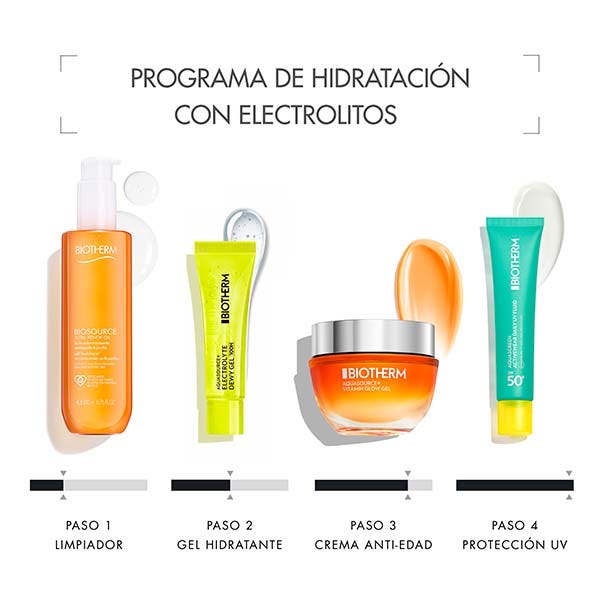 Inspirado en la hidratación del universo del fitness, Biotherm Aquasource+ Electrolyte Dewy Gel 100H es una crema hidratante ligera de última generación diseñada para recargar las reservas de hidratación de tu piel y revelar un brillo visiblemente húmedo y saludable.