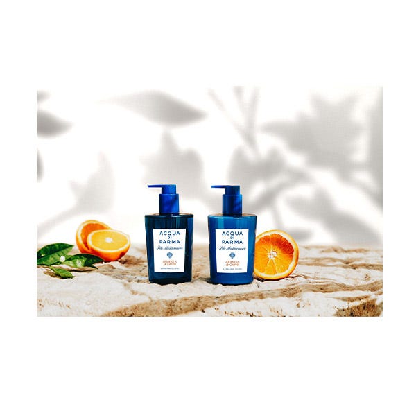 Envuélvete en una maravillosa sensación con la Loción para Manos y Cuerpo Arancia di Capri de doble uso que se absorbe rápidamente en la piel para una hidratación y un aroma relajante que perdura.