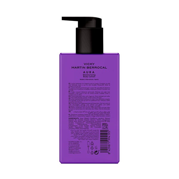 Envuelve tu piel en la luminosidad irresistible de Aura con este body milk hidratante que prolonga la frescura y sofisticación de su fragancia. Su textura ligera y sedosa nutre profundamente, dejando la piel suave, radiante y delicadamente perfumada. Las notas frescas de pera y flor de naranjo despiertan los sentidos, mientras el corazón chispeante de pimienta negra, lirio de los valles y rosa aporta un toque vibrante y femenino. La base cálida y envolvente de vainilla, haba tonka y almizcle crea una estela seductora que acompaña tu piel durante todo el día. Aura Body Milk transforma el cuidado diario en un ritual de belleza lleno de brillo y elegancia.