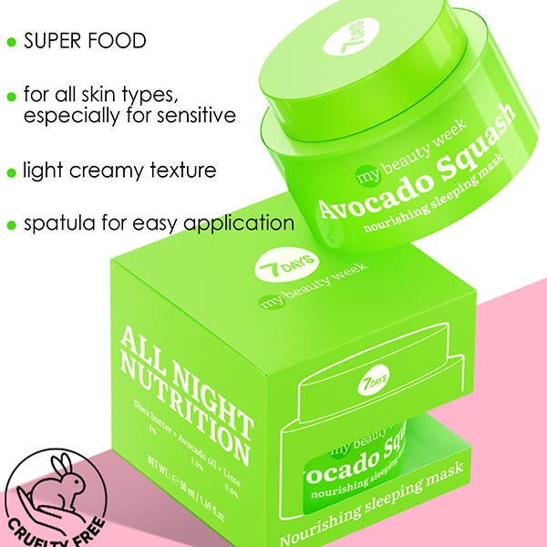 Transformación Instantánea: Mascarilla Nutritiva 7DAYS AVOCADO SQUASH para una transformación nocturna de la piel.