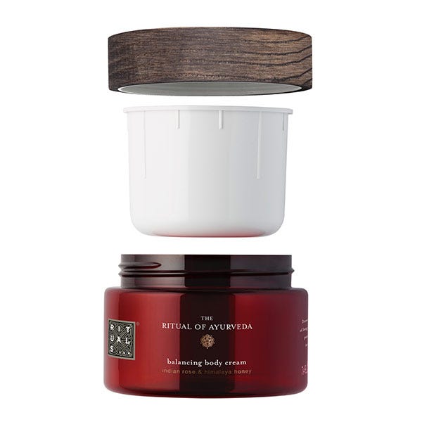Opta por la recarga eco-chic para la crema corporal de The Ritual of Ayurveda y cuida del medioambiente además de tu piel.