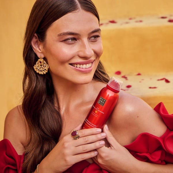 Su textura ligera se absorbe rápidamente y deja la piel suave y maravillosamente perfumada con la delicada fragancia de la rosa de la India y el aceite de almendras dulces.