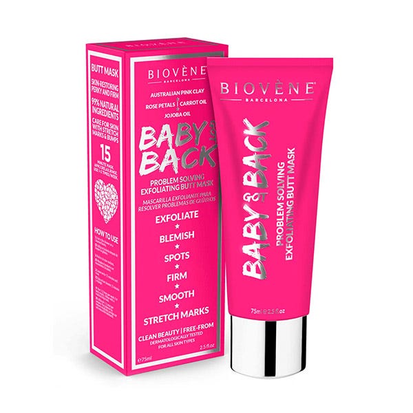 El tratamiento exfoliante de glúteos con ingredientes estrella Arcilla rosa australiana, Pétalos de rosa, Jojoba y Aceite de zanahoria ayuda a restaurar la firmeza y el cuidado de la piel con estrías y protuberancias para mejorar un trasero naturalmente atractivo.