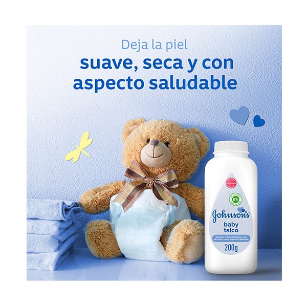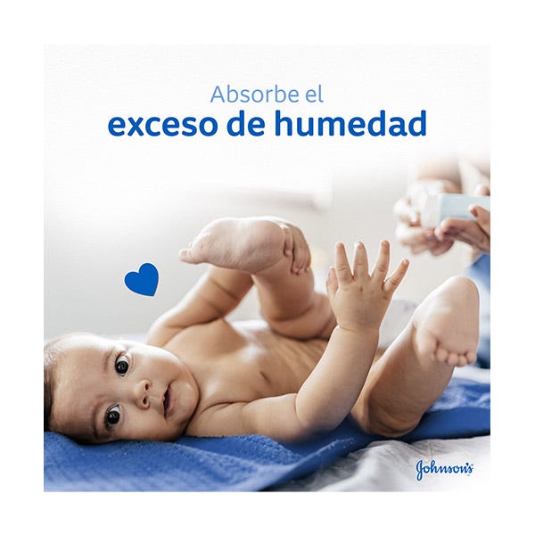 El Talco de Johnson’s Baby absorbe el exceso de humedad de la piel del bebé y la mantiene suave y seca durante el día.