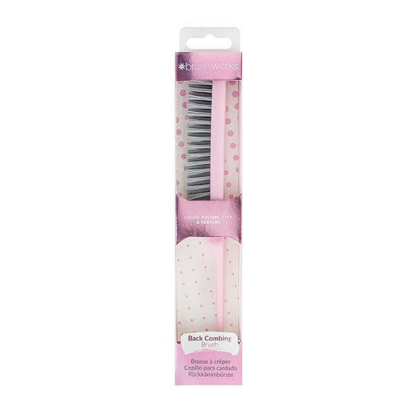 ¡Añade dramatismo y volumen a tu cabello con el cepillo Brushworks Back Combing! Con un mango de fácil agarre que también puede usarse para seccionar el cabello, este cepillo aporta volumen al pelo lacio con un daño o quiebre mínimo.