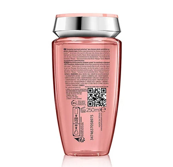 Bain Riche Chroma Respect es un champú protector rico y nutritivo para cabello coloreado sensibilizado y/o dañado medio o grueso. Esta fórmula de gel transparente de rosa claro limpia y nutre el cabello mientras respeta y preserva el color del cabello para que no se desvanezca**. Enriquecido con Ácido Láctico y Centella Asiática, este champú junto con Fondant ayuda a sellar la porosidad de la fibra, alisando la superficie para una máxima retención del color y reducir el encrespamiento derivado del color. El cabello está 61% más nutrido ***, más fuerte y refleja un 65% más de brillo intenso***. Fibra tan saludable que el 92% de la intensidad del color se conserva después de 6 semanas*.9 de cada 10 mujeres están de acuerdo en que el cabello se siente nutrido e hidratado, y se ve revitalizado****. *Test instrumental con Bain Riche Chroma Protect + Masque. **Test a consumidor con Bain Riche Chroma Protect + Masque + Serum ***Test intrumental con Bain Riche Chroma Protect **** Test a consumidor: Bain Riche Chroma Respect + Masque Chroma Filler + Serum Chroma Thermique