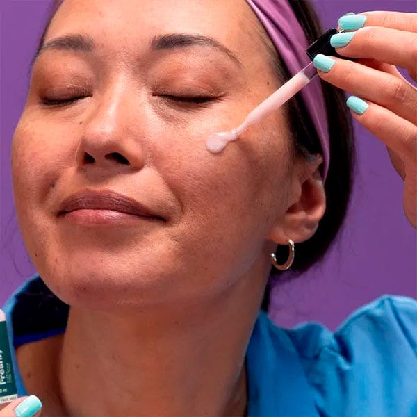 Con ayuda de la pipeta aplica 4 gotas repartidas entre la frente, las mejillas y la barbilla.