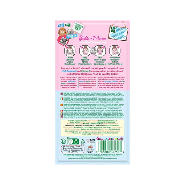 Brilla como una Barbie con nuestra mascarilla peeling "poro-fecto" rosa. El Pomelo y la Vitamina E limpian los poros en profundidad para conseguir un cutis tonificado y fresco: ¡estarás como en un sueño!