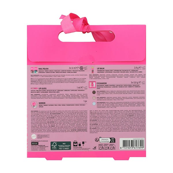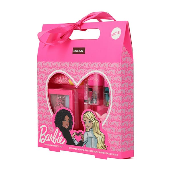 Organiza una noche de chicas con un look glamoroso, gracias al Set de Regalo Cosmético Barbie de Sence. En su interior, encontrarás dos esmaltes de uñas con colores fabulosos, un brillo labial con color, una paleta de sombras de ojos con brillantina y un bálsamo labial calmante, todo acompañado de un práctico espejo de bolsillo.