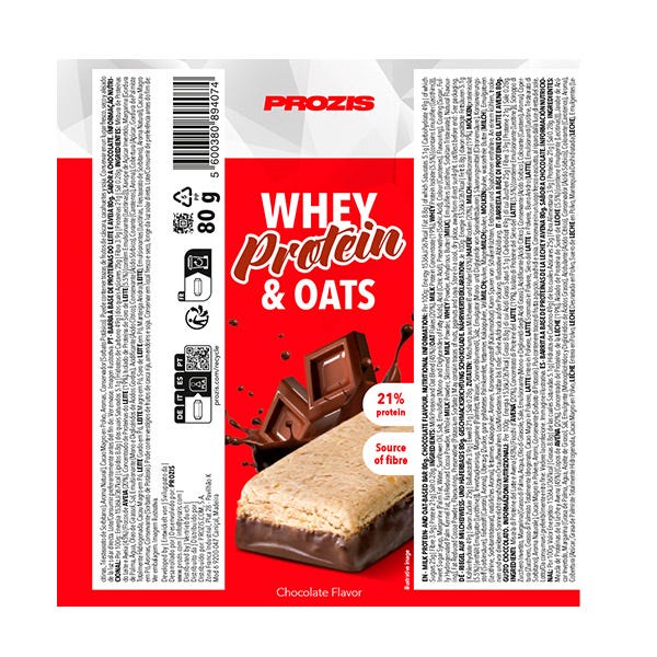 Si buscas un aperitivo rico en proteínas y con ingredientes saludables, ¡deja ya de buscar! Llena de vitaminas, minerales, y fibra, ¡esta barrita es una excelente fuente de proteína de suero de leche! Whey Protein & Oats de Prozis saciará tus antojos, evitará que te sientas culpable y te aportará un montón de proteínas.