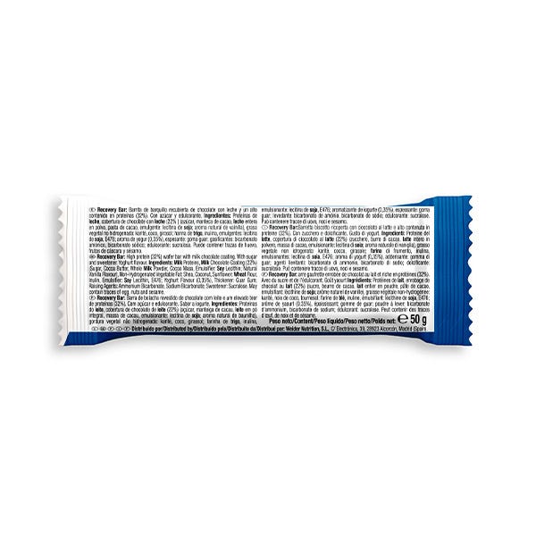 Recovery Bar ha sido elaborada con un 32% de proteína, con una cobertura de crujiente galleta, chocolate y yoghurt...¡hemos mejorado la fórmula! ¡Este nuevo desarrollo contiene menos azúcar manteniendo su sabor irresistible!