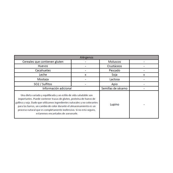 Puede contener trazas de gluten, proteína de huevo de gallina y soja.