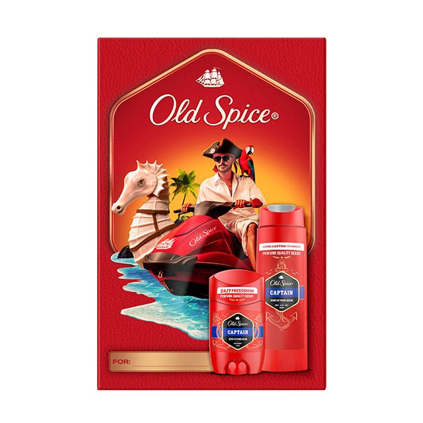 ¿Buscas el perfecto para el pirata moderno que navega por la vida con osadía y una fragancia legendaria? ¡No busques más! El set incluye desodorante en barra y gel de ducha para hombre Captain, elegantemente empaquetados en una caja de cartón con diseño Captain. Nada puede salir mal con el excepcional aroma Captain de Old Spice: la fragancia de las feroces olas del océano, el sándalo y la acidez de la bergamota te transformará en el intrépido capitán de la frescura.