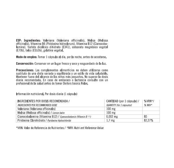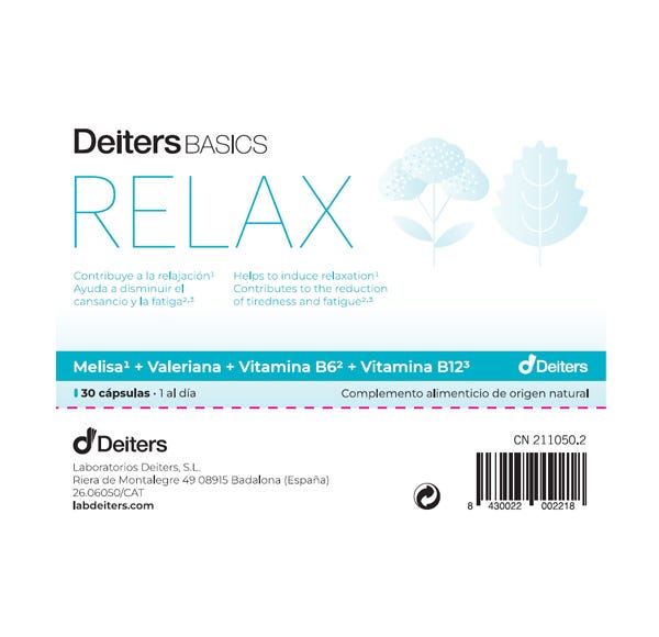 Deiters Basics Relax es un complemento a base de extracto de planta medicinal que contribuye a la relajación y ayuda a disminuir el cansancio y la fatiga.