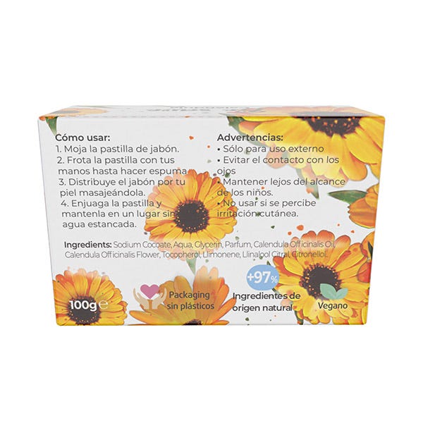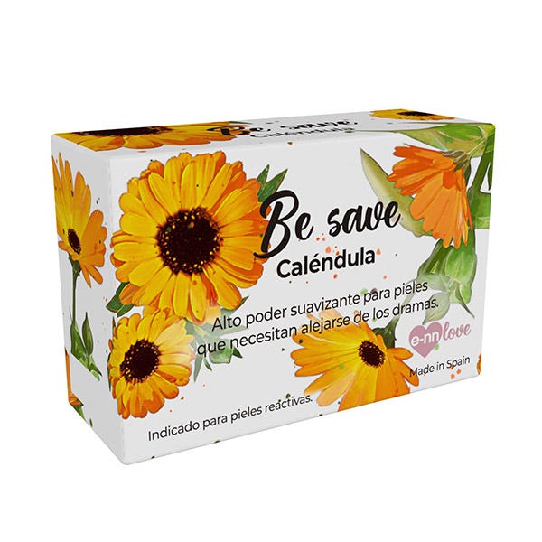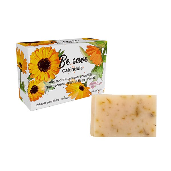El jabón vegano BE SAVE de Caléndula cuida la piel gracias a su gran poder antiinflamatorio y cicatrizante, por lo que es idónea para tratar pieles castigadas.