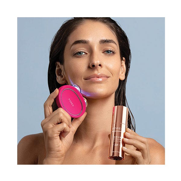 Recomendamos usar FOREO SUPERCHARGED™ Serum 2.0, porque ha sido clínicamente probado que aumenta la producción de colágeno tipo 1 para lucir una piel radiante. Desde la comodidad de tu casa, sin dolor y con tus propias reglas