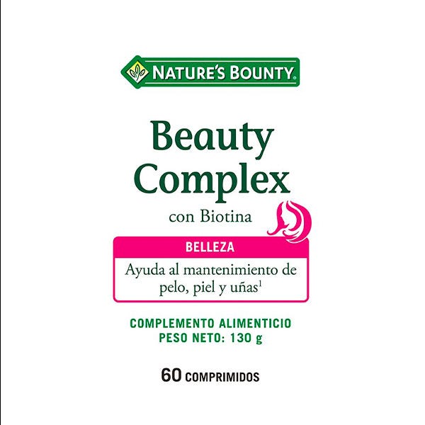La fórmula Beauty Complex de Nature’s Bounty® es una combinación sinérgica de vitaminas, minerales y otros nutrientes de esta fórmula, contiene entre otros zinc que contribuye al mantenimiento normal de la piel, pelo y uñas y vitamina C que contribuye a la formación normal de colágeno para la piel.