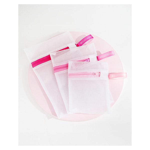 El set de bolsas de lavado Brushworks Beauty Wash Bag Set es la herramienta perfecta para proteger las almohadillas desmaquillantes, de limpieza y exfoliación, así como las toallitas de maquillaje, evitando daños durante el lavado o secado. Las tres bolsas de lavado ofrecen un enfoque práctico y ecológico para tu rutina de cuidado de la piel.