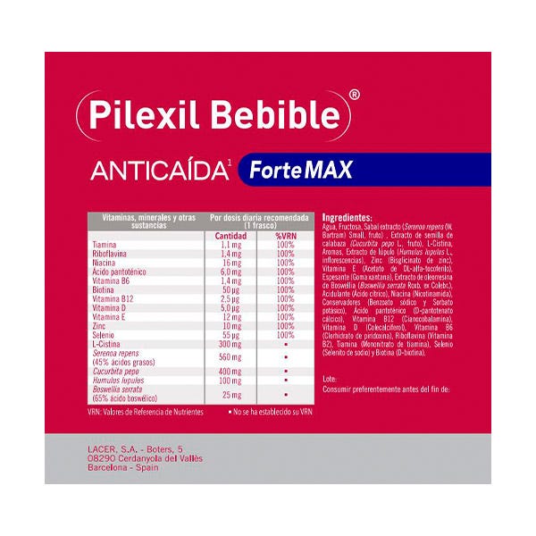 Pilexil Bebible Forte Max es un complemento alimenticio que frena la caída acelerada del cabello en la fase de crecimiento, alargando el ciclo de vida capilar.