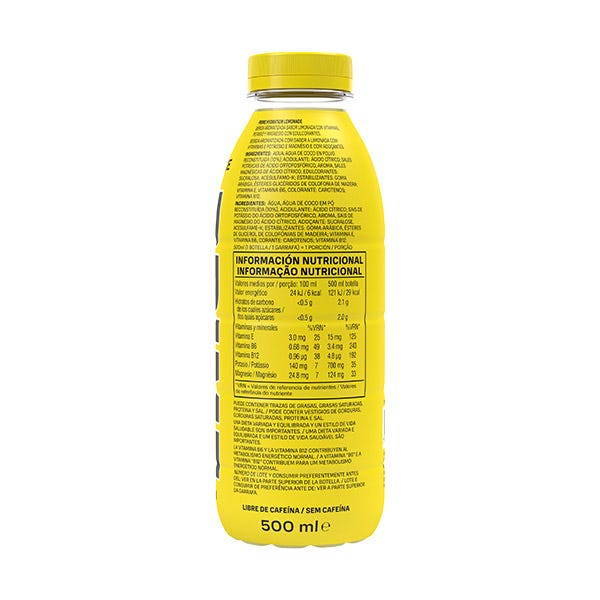 -Bebida refrescante aromatizada con sabor limonada con vitaminas, potasio, magnesio y con edulcorantes.