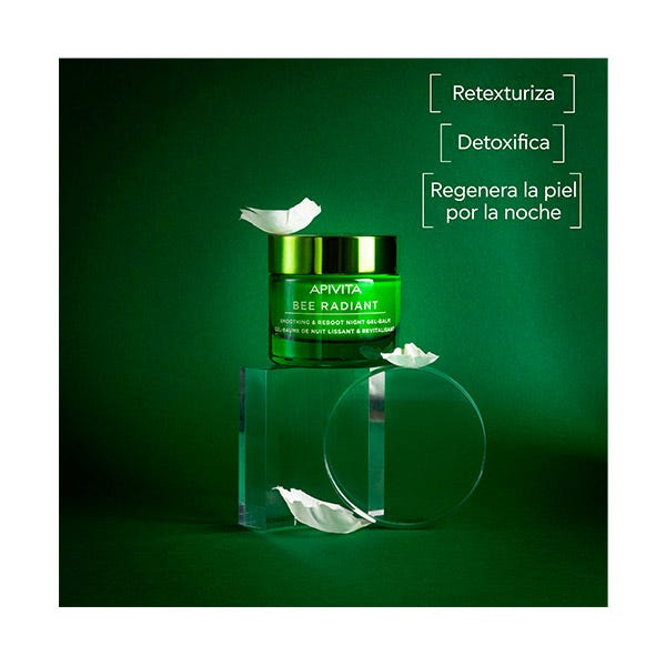 Un bálsamo en gel revolucionario, con extracto de peonía blanca, propóleo patentado y calabaza que transforma la piel durante la noche recobrando su luminosidad gracias a un eficaz peeling suave y su acción restauradora.