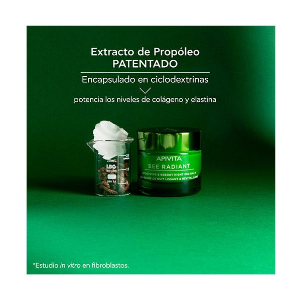 • Mejora la síntesis de colágeno, elastina y ácido hialurónico, ofreciendo una piel hidratada, más elástica y de aspecto más joven, gracias al extracto de propóleo patentado, el glucógeno vegetal y la glicina natural.